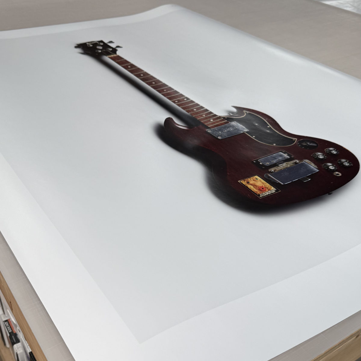 Scale is a bold new photography exhibition by Kane Hibberd, opening June 12th at Unlocked Shoreditch. Kane has spent over a decade photographing the world’s most iconic guitars to create life-size portraits. See Bill’s Gibson EB-3 up close, alongside a hundred others, and read all about the story and memories behind it.