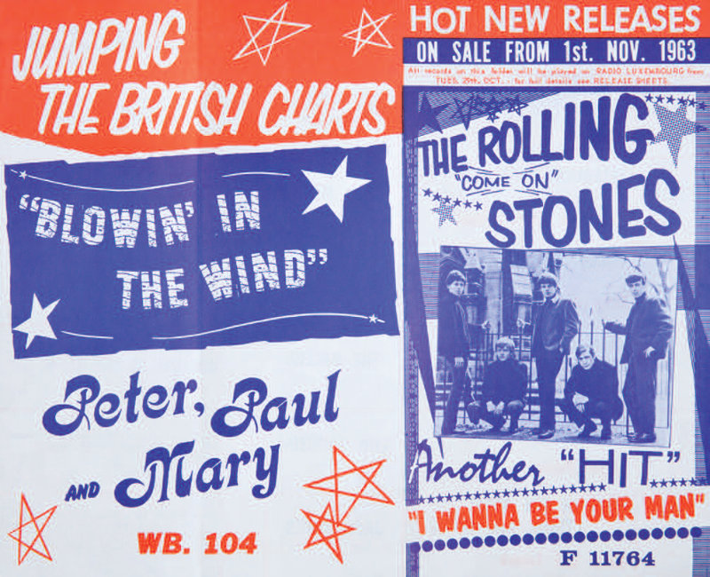 An October 1963 UK publicity flyer, originally distributed to record dealers, advertising the Rolling Stones second single “I Wanna Be Your Man” and promising “Another Hit,” a follow-up to the Stones first single “Come On” released in the UK on June 7, 1963.